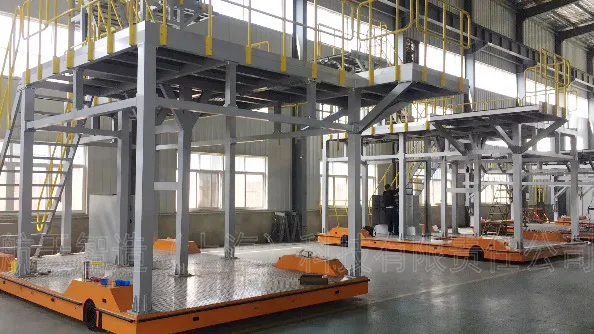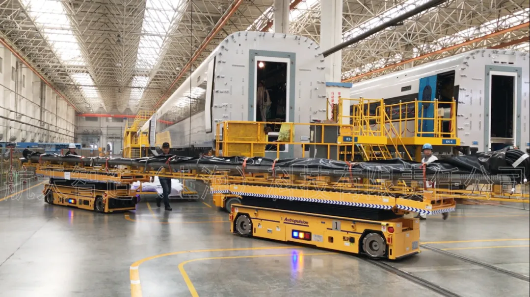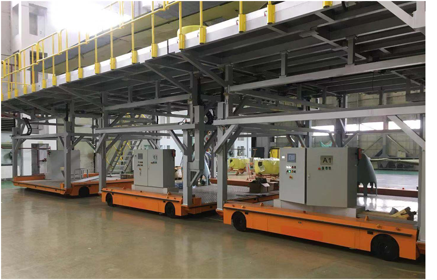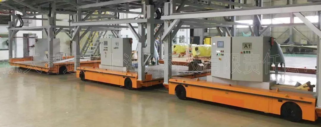 比如用于軌道車輛整車轉(zhuǎn)運的“2x30T全向舵輪車”、用于衛(wèi)星艙轉(zhuǎn)運的“3x40T全向舵輪車”、用于動車車體底架轉(zhuǎn)運的“2x5T麥克納姆輪式車”、用于動車車底線槽轉(zhuǎn)運的“2x2T麥克納姆輪式車”、用于機塢轉(zhuǎn)運的的“3x5T麥克納姆輪式車”,都使生產(chǎn)工藝發(fā)生了革命性的變化。